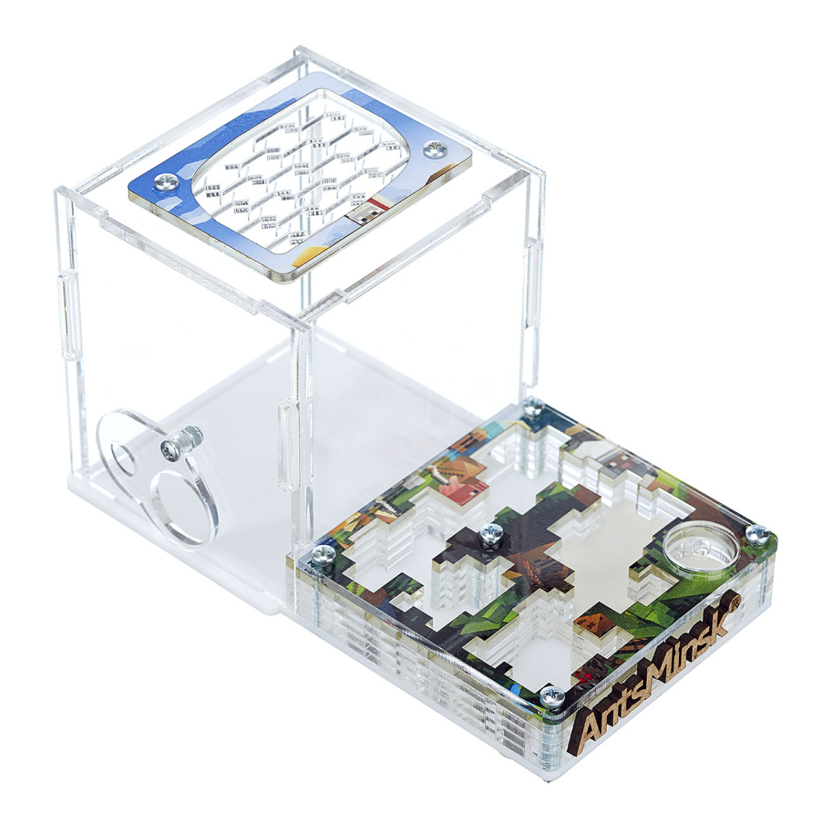 Муравьиная ферма продумана и сделана таким образом, что все детали плотно соединяются между собой, чтобы ни один муравей не смог сбежать, а встроенная вентиляция обеспечивает обмен воздуха. Через прозрачное стекло вы сможете наблюдать полный цикл жизнедеятельности мурашей, от маленького яйца до рождения муравья.
