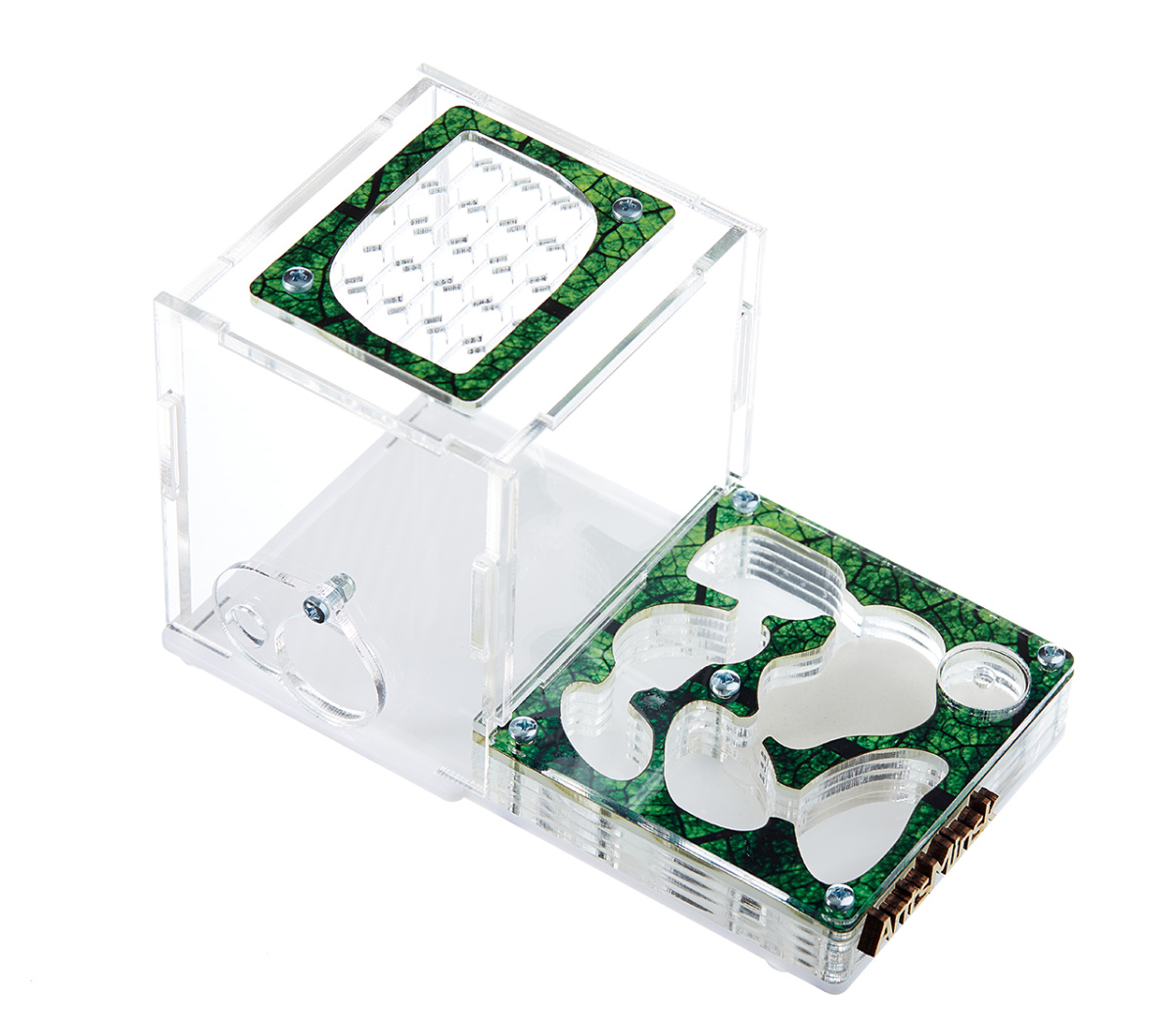 Муравьиная ферма продумана и сделана таким образом, что все детали плотно соединяются между собой, чтобы ни один муравей не смог сбежать, а встроенная вентиляция обеспечивает обмен воздуха. Через прозрачное стекло вы сможете наблюдать полный цикл жизнедеятельности мурашей, от маленького яйца до рождения муравья.