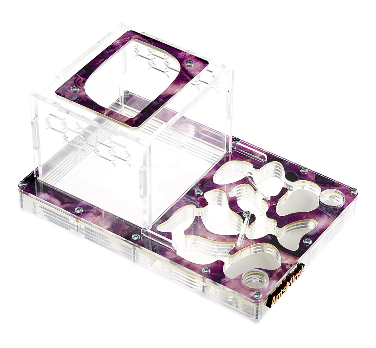 Муравьиная ферма продумана и сделана таким образом, что все детали плотно соединяются между собой, чтобы ни один муравей не смог сбежать, а встроенная вентиляция обеспечивает обмен воздуха. Через прозрачное стекло вы сможете наблюдать полный цикл жизнедеятельности мурашей, от маленького яйца до рождения муравья.