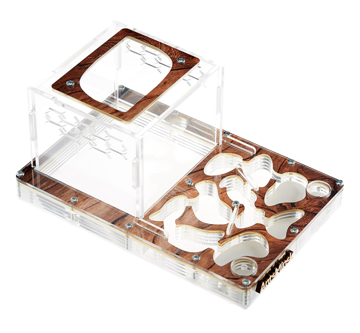 Муравьиная ферма продумана и сделана таким образом, что все детали плотно соединяются между собой, чтобы ни один муравей не смог сбежать, а встроенная вентиляция обеспечивает обмен воздуха. Через прозрачное стекло вы сможете наблюдать полный цикл жизнедеятельности мурашей, от маленького яйца до рождения муравья.