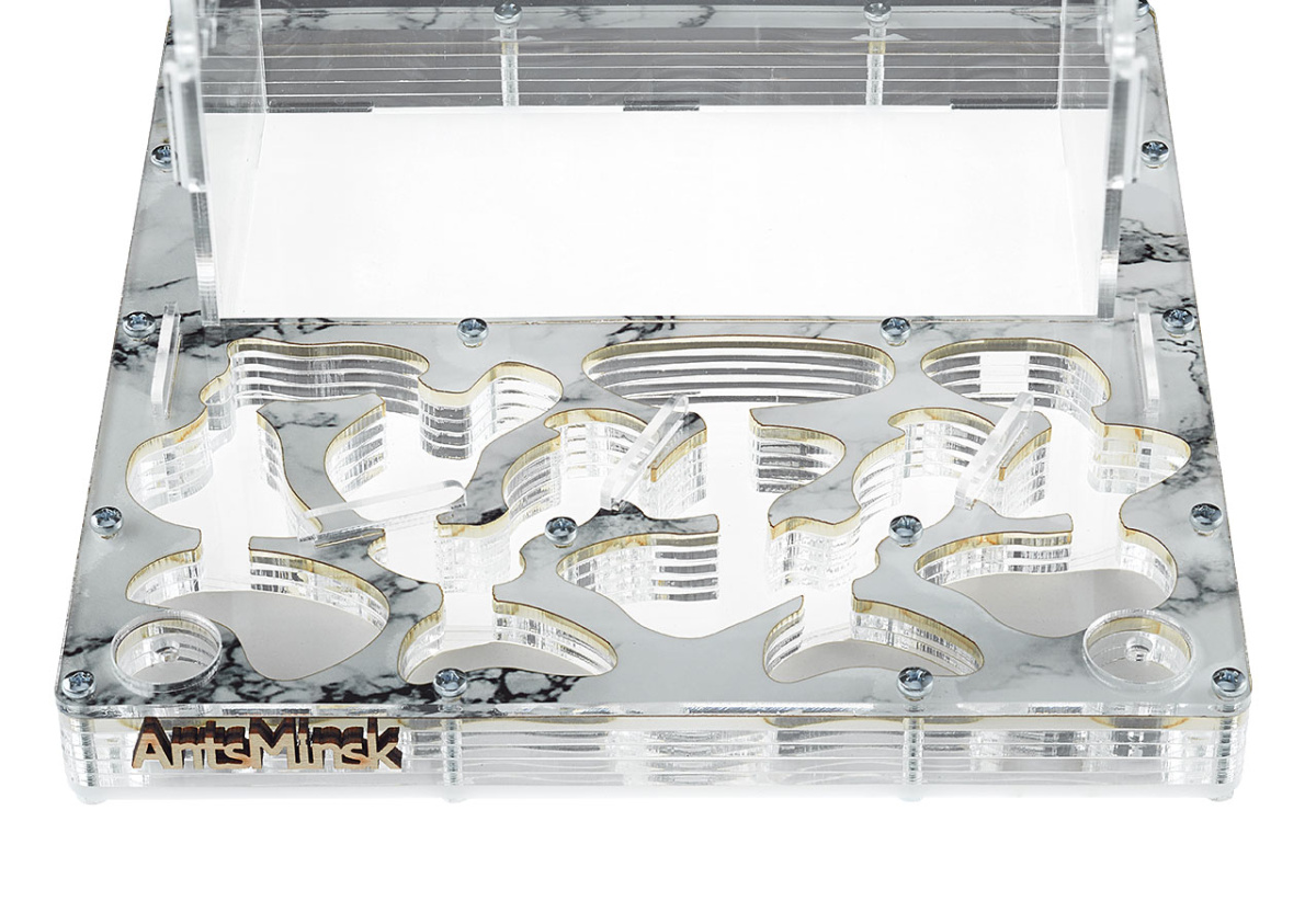 Муравьиная ферма XXXL marble (гипсоакриловая ферма с системой автоувлажнения). Данный тип фермы отлично подходит для муравьев Messor Structor (жнецы). С помощью гипсовой плиты этот вид муравьев получает необходимое количество влаги, а также она необходима для размачивания семян, которые являются основной пищей для муравьев-жнецов.