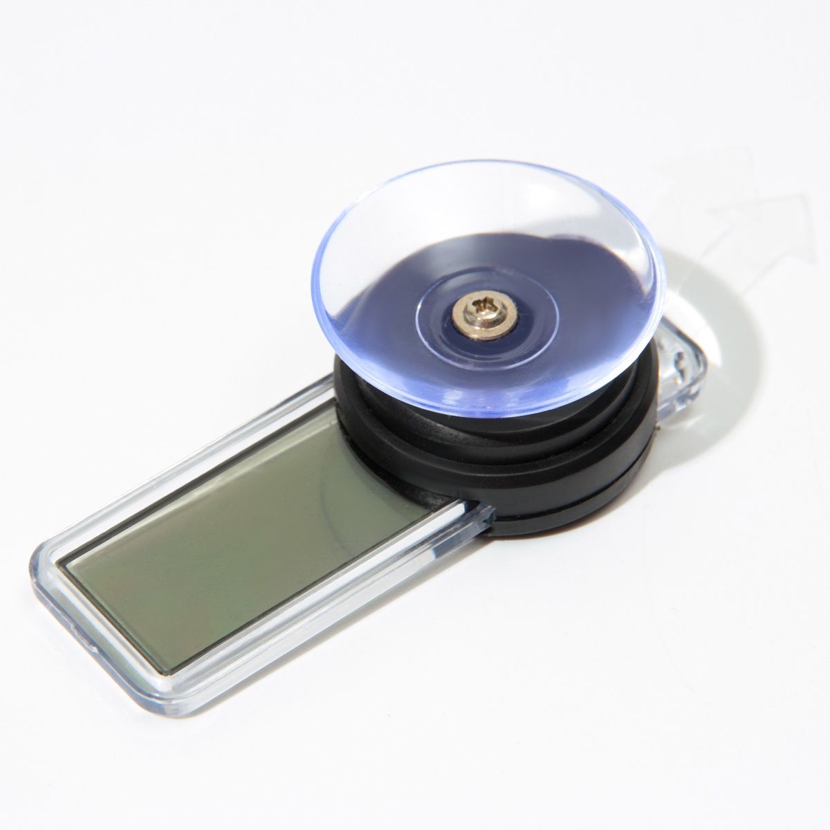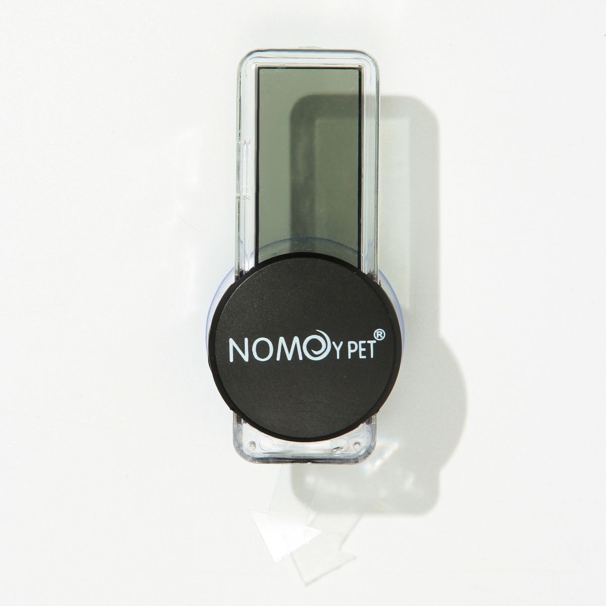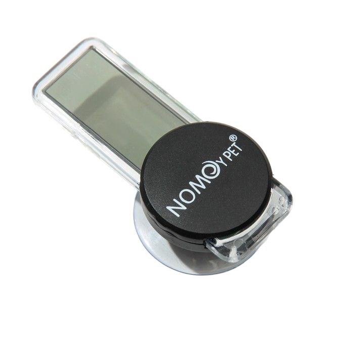 Термометр Nomoy Pet для террариума, на присоске. Устройство имеет цифровой дисплей, на котором отображается текущая температура в градусах Цельсия. Термометр легко устанавливается, что делает его мобильным и удобным в использовании.
